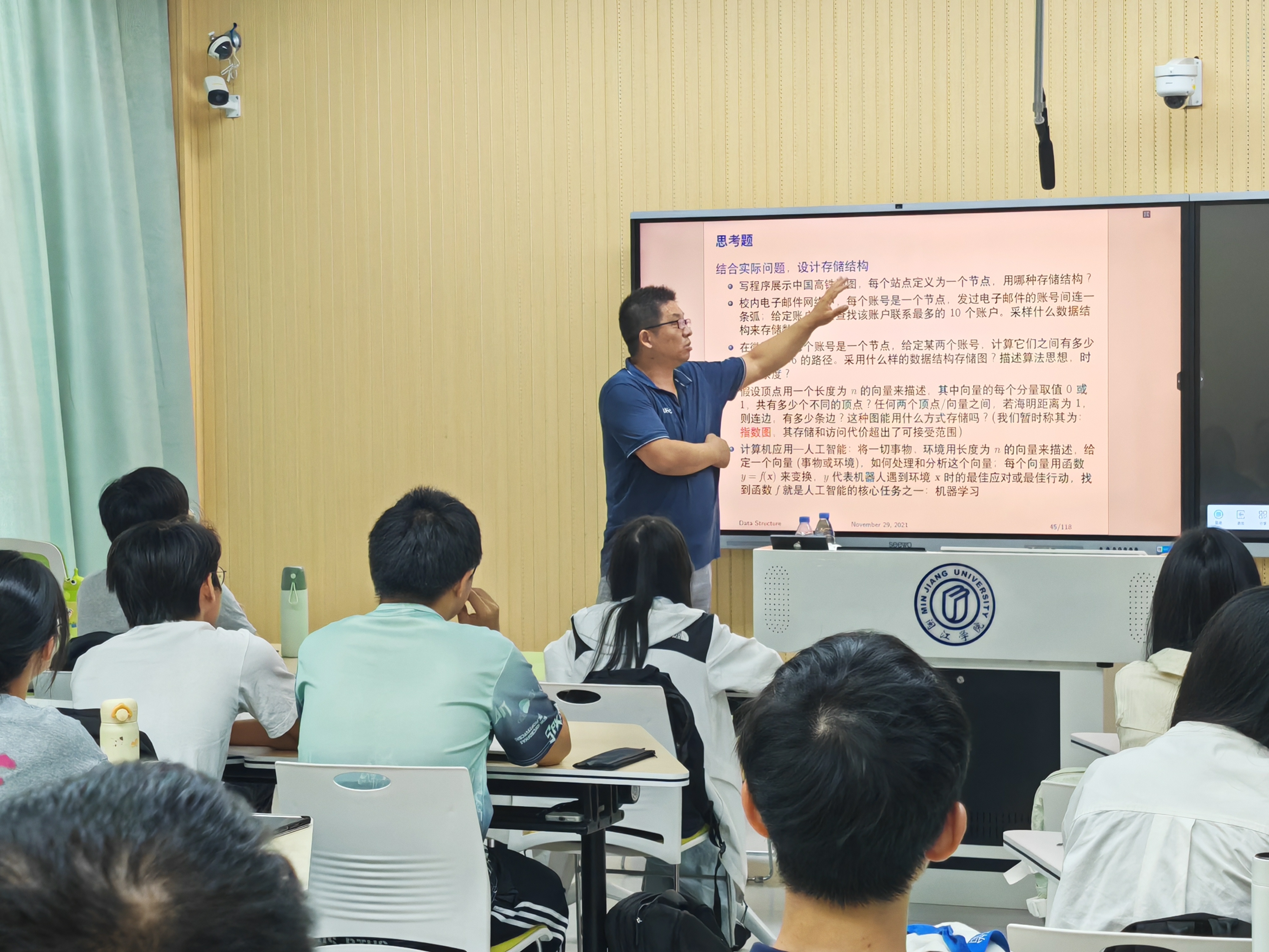 11 月 16 日下午,中国科学技术大学李金龙教授围绕“数据结构中图的搜索与遍历”内容为实验班同学们进行现场示范授课。校长教学事务特别助理许胤龙教授亲临现场指导,计算机学院领导、各系主任和数据结构课程组教师到现场学习交流,旨在借鉴先进的教学理念和方法,提升整体教学水平。