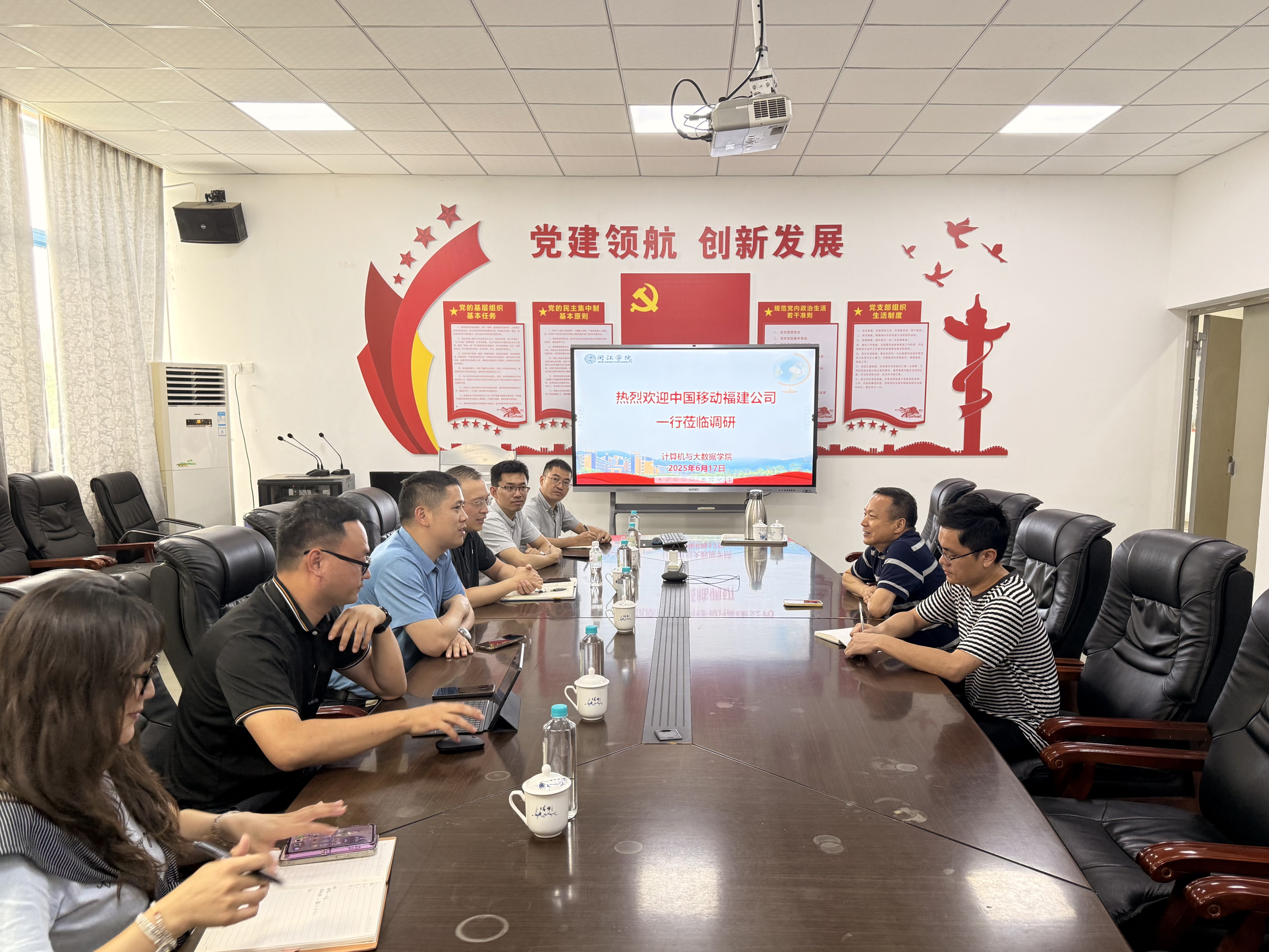 2025年6月17日,中国移动通信集团有限公司福建分公司战略客户部副总经理王金波一行来访中文字幕 ,就深化校企合作展开考察交流。本次访问旨在增进相互了解,探讨双方在技术创新、人才培养和产学研协同方面的合作潜力。中文字幕 院长孙知信主持接待并座谈。