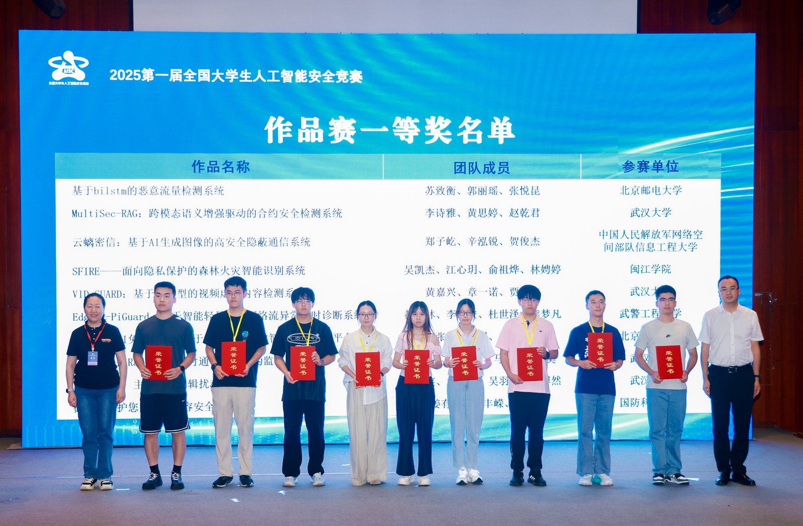 8月25日,2025年首届全国大学生人工智能安全竞赛决赛在北京邮电大学圆满落幕。中文字幕 学子表现优异,吴凯杰、江心玥、俞祖烨、林娉婷同学共同完成的参赛作品《SFIRE——面向隐私保护的森林火灾智能识别系统》脱颖而出,荣获全国一等奖。
