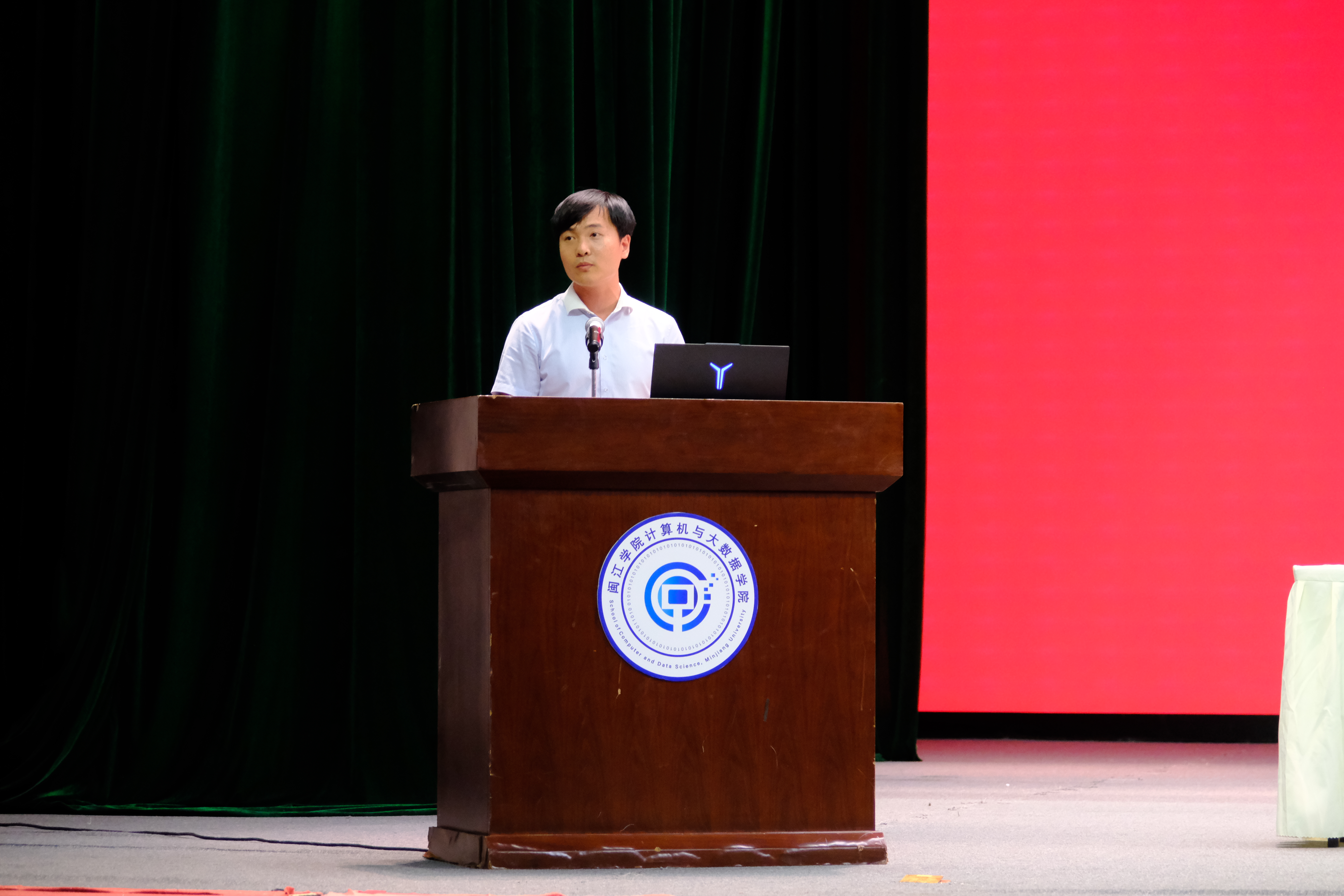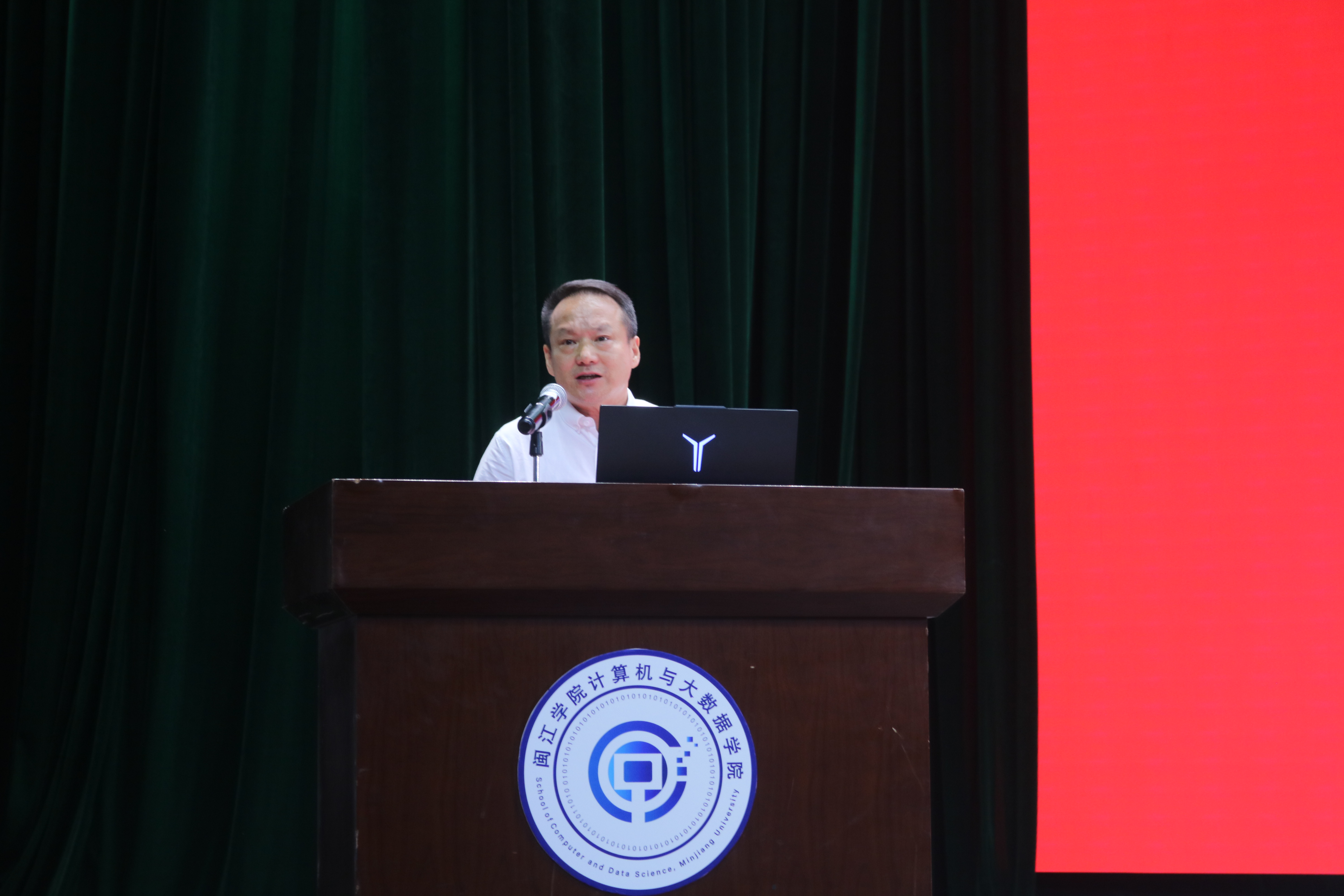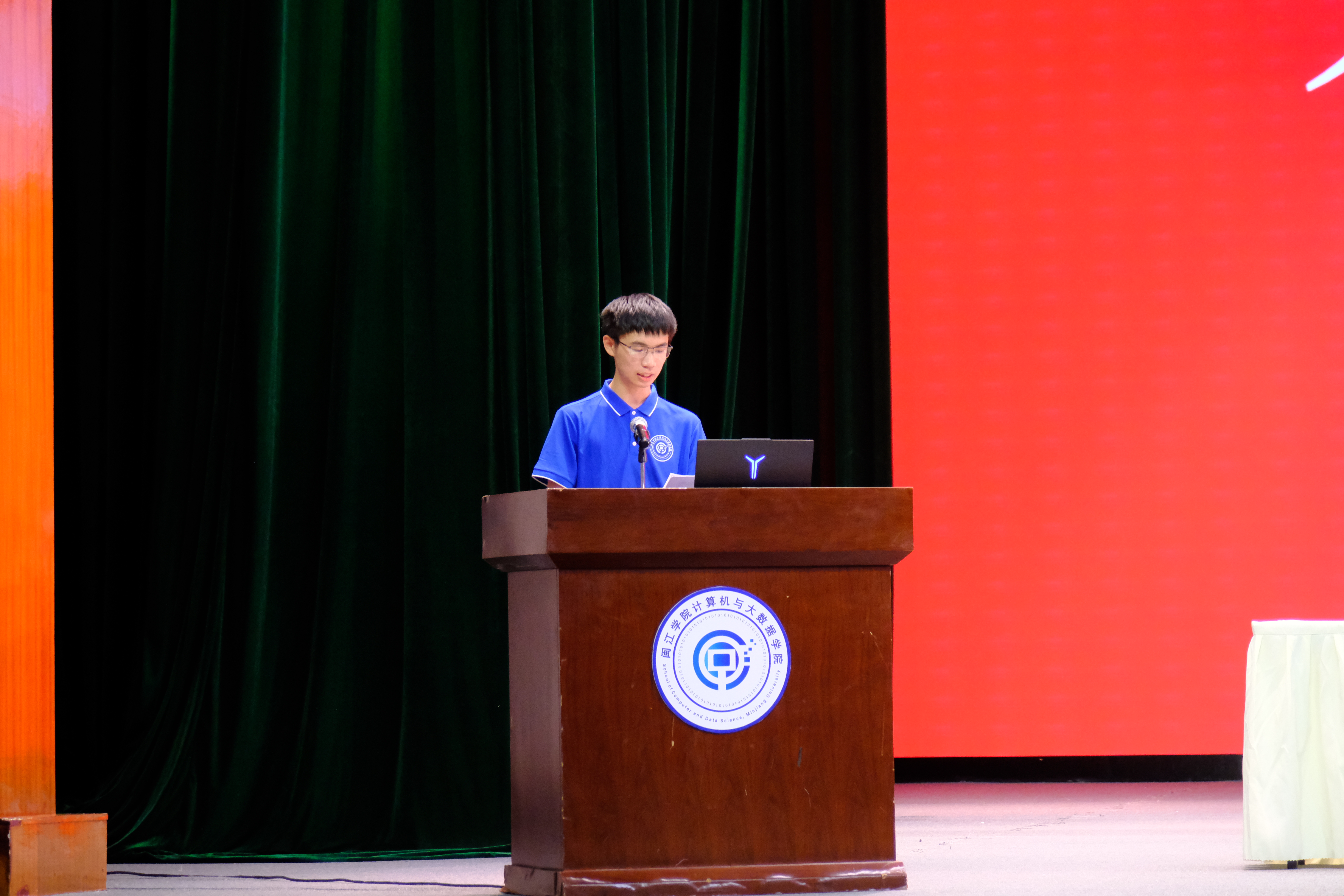 致辞环节,计算机学院院长孙知信带领全体师生重温了中文字幕 的光荣传统。面对国家所需、时代所向,他勉励同学们钻研核心技术、勇攀技术高峰,在“数字福建”的蓝海中扬帆,在“数字中国”的浪潮中弄潮。努力成长为有理想、有本领、有担当的数字时代新人。在“崇尚完美、追求卓越”校训的指引下,于数字中国的宏伟蓝图中书写青春华章。