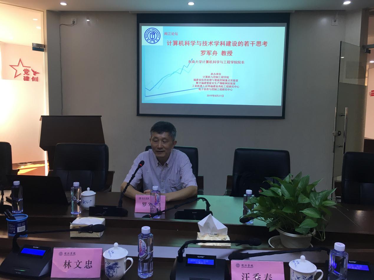2019827日上午,东南大学计算机科学与工程学院院长罗军舟教授应邀莅校交流讲学,主题为“计算机科学与技术学科建设的若干思考”。交流报告会由计控学院院长林文忠教授主持,党委书记汪秀春,党委副书记张颖,副院长徐戈、吴景岚及各专任教师参加了本次讲座。