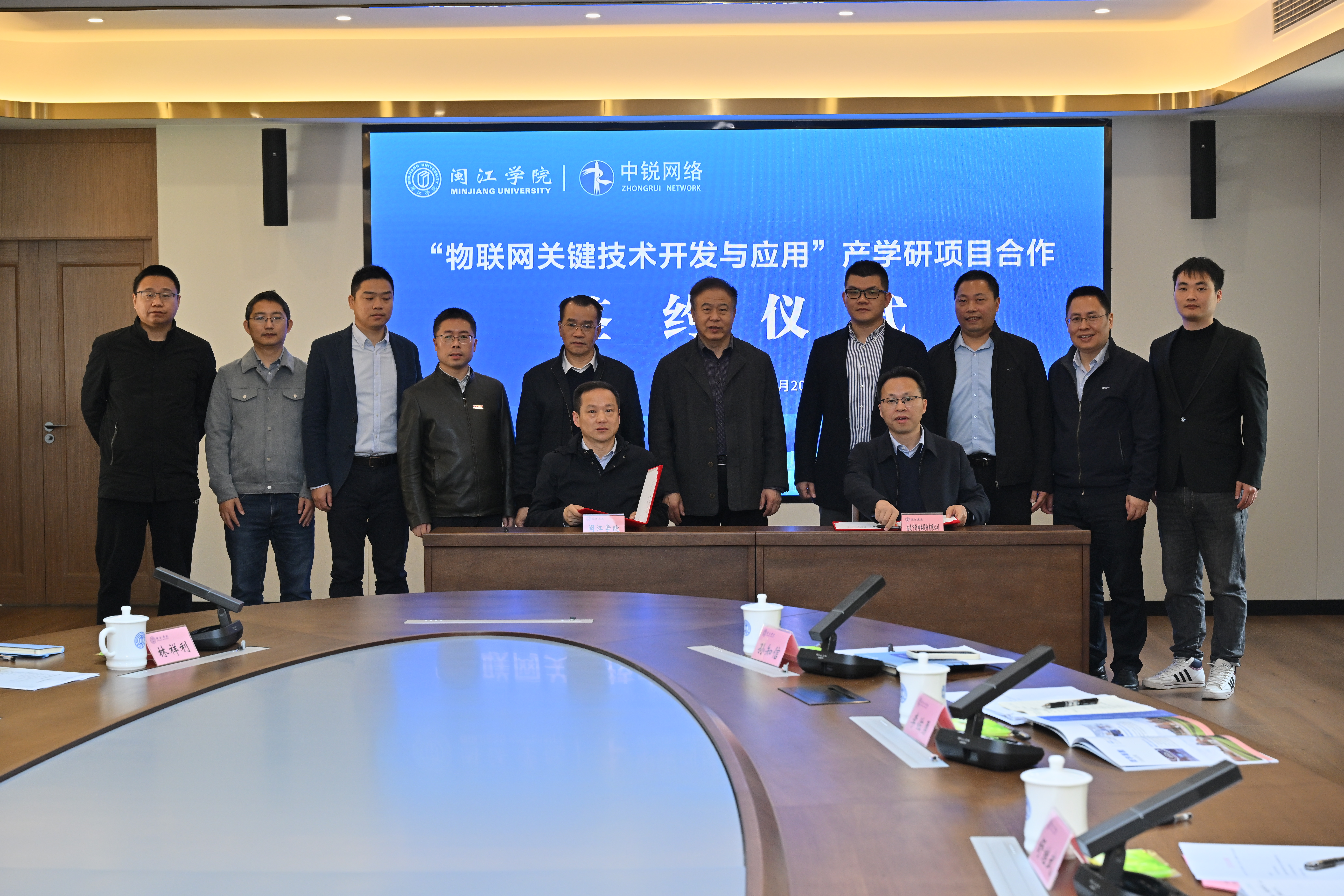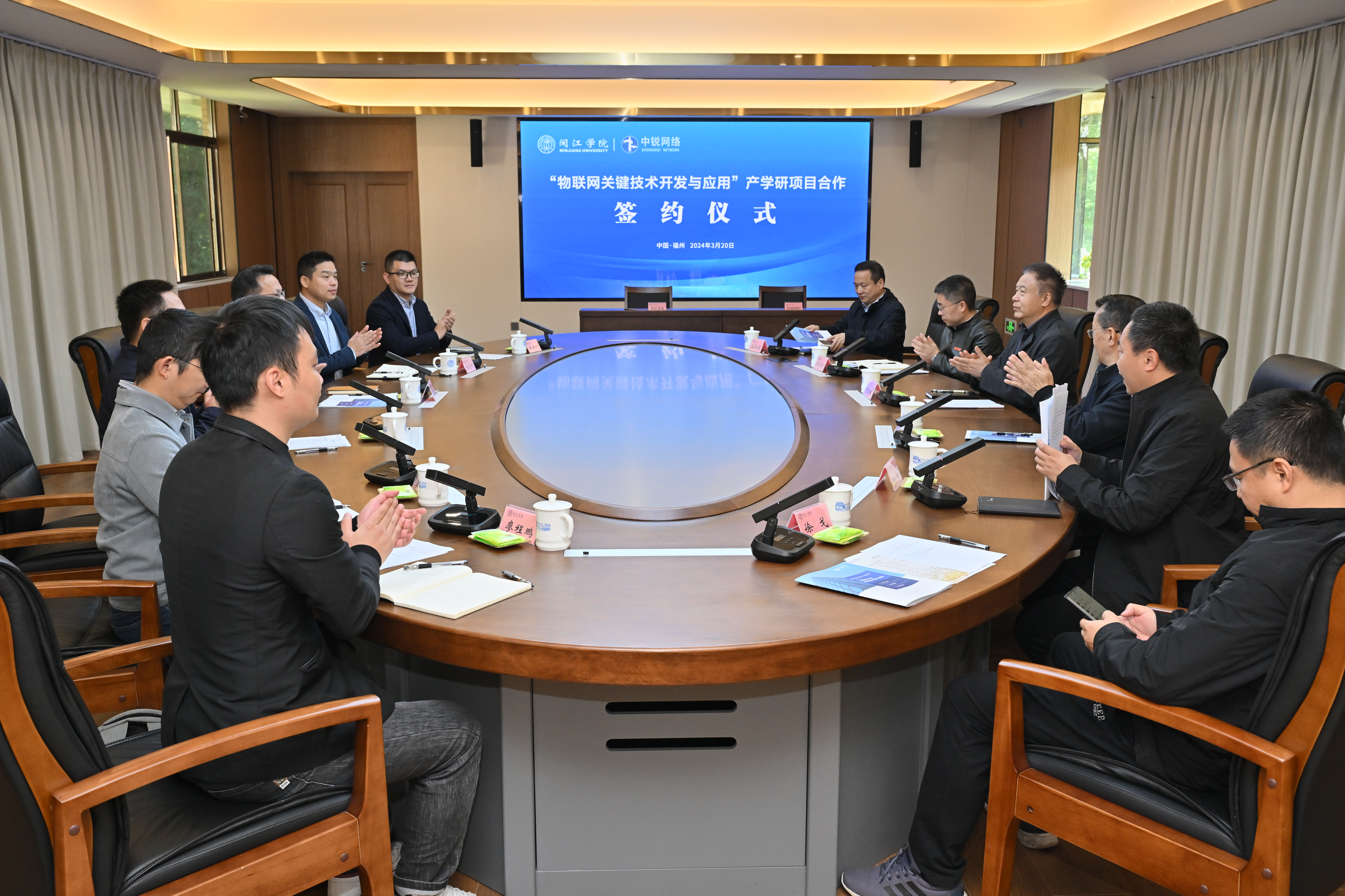3月20日上午,中文字幕 举办“物联网关键技术开发与应用”产学研项目签约与启动仪式,校长舒继武、副校长傅高升、科研处李佐勇副处长、计算机学院院领导及教师代表、福建中锐网络股份有限公司黄祖海董事长及企业相关人员参会,会议由计算机学院党委书记林耿主持。