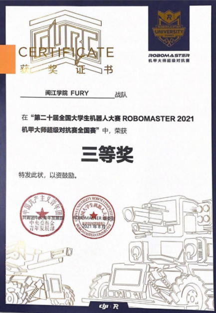 计控学院学生获第二十届全国大学生机器人大赛 ROBOMASTER 2021机甲大师超级对抗赛全国赛三等奖