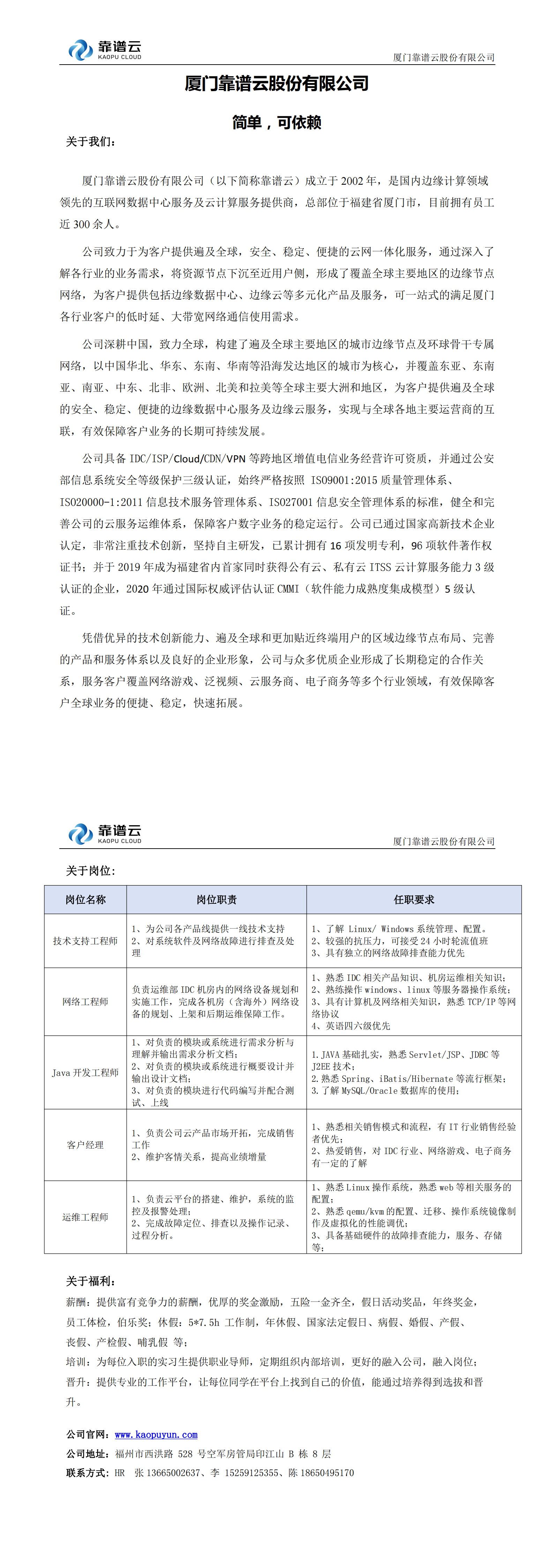 【就业资讯】厦门靠谱云股份有限公司招聘简章