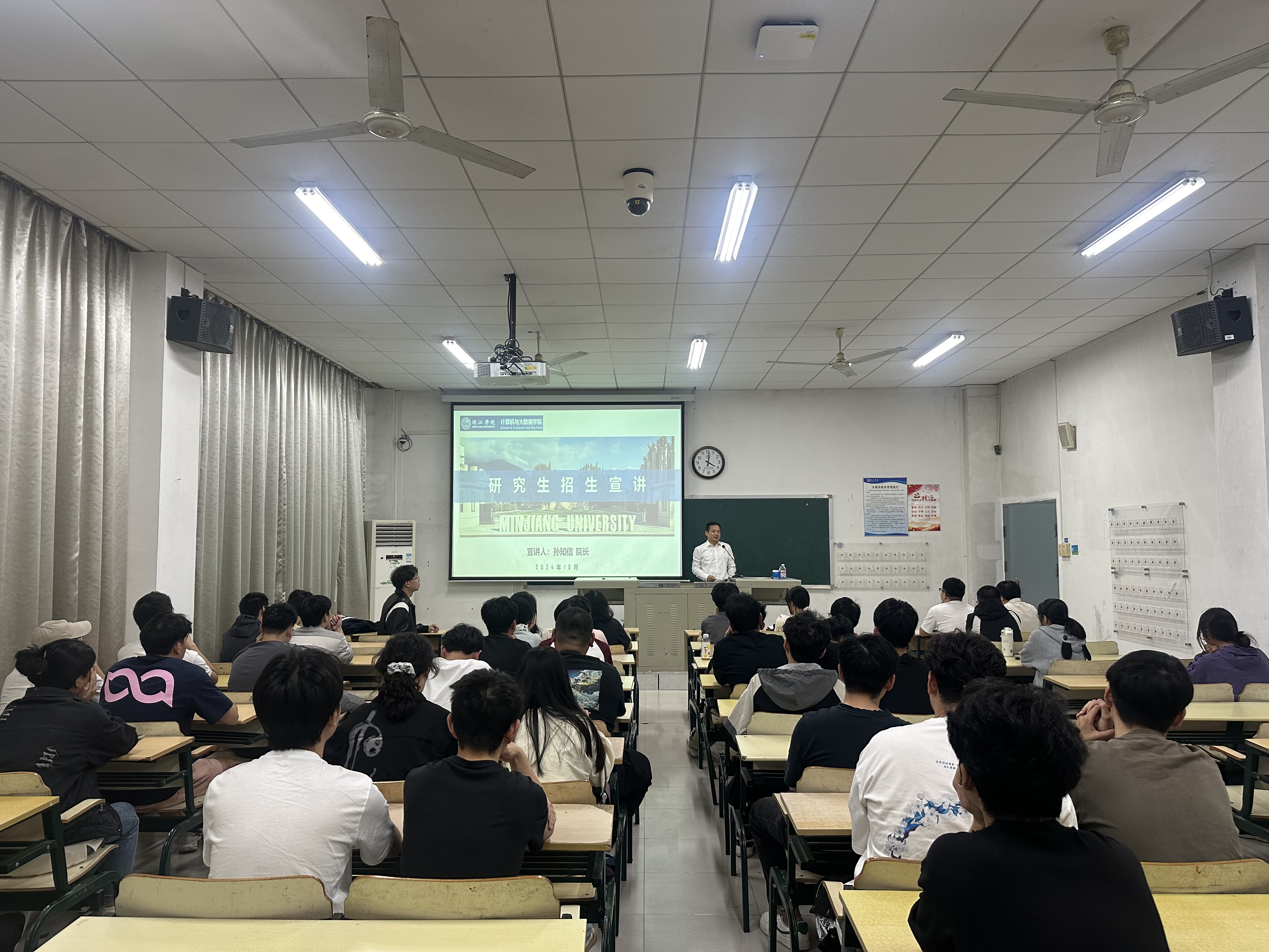 会上,孙知信院长首先以中文字幕概况 为切入点,在专业建设、师资队伍以及学科平台等方面为同学们进行了详细介绍。随后,孙院长展示了学院学科带头人及硕士生导师的强大师资队伍,并深入讲解了2025 考研流程的时间节点、初试科目、分数线以及调剂要求等关键信息。孙院长指出,学院拥有一流的教学资源、优秀的师资队伍和良好的学术氛围,能够为同学们的研究生学习提供坚实的保障,希望同学们积极报考本学院。孙院长鼓励同学们树立远大的目标,勇敢地追求自己的梦想,为自己的未来努力拼搏。