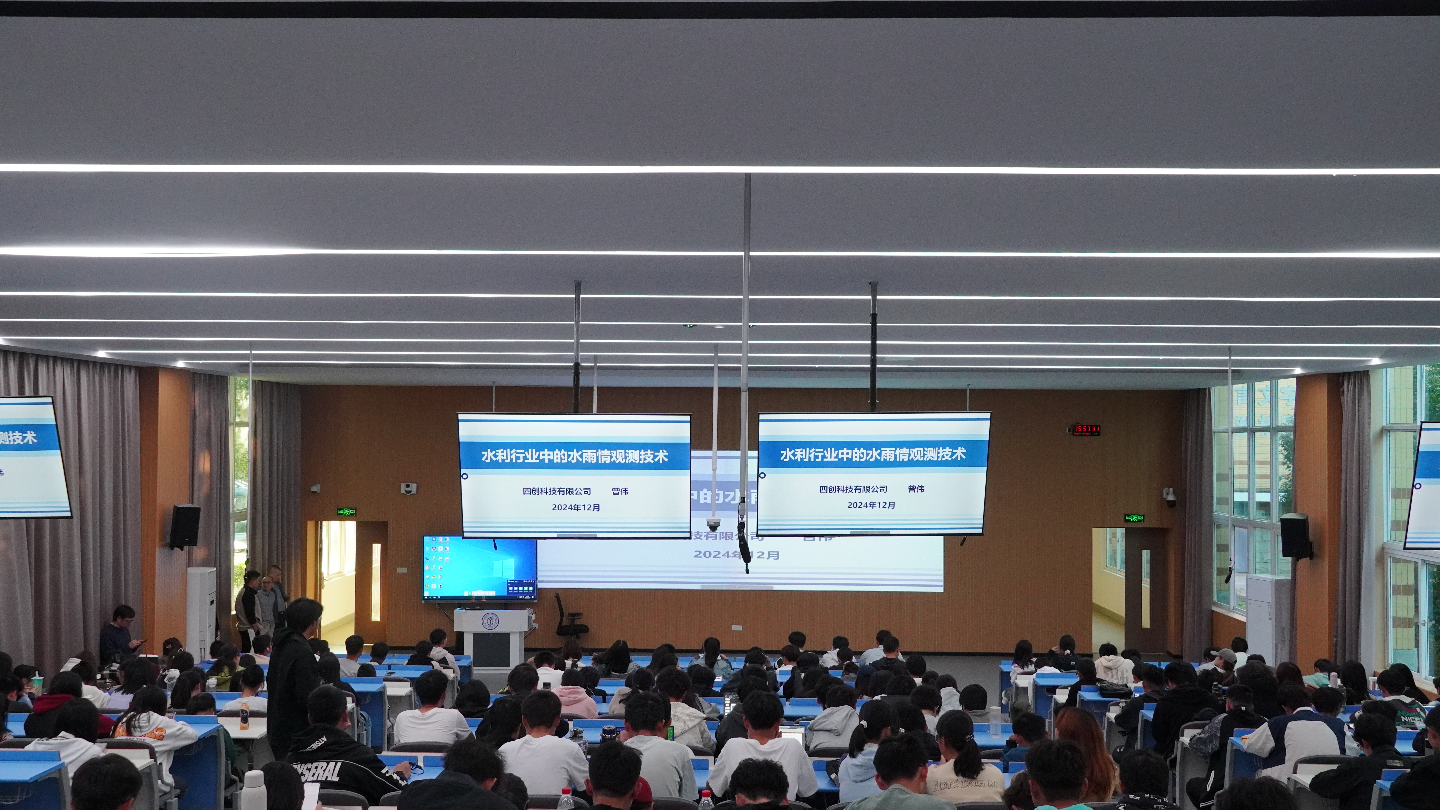 2024年12月2日下午,中文字幕 于教学楼2B106举办“水利行业中的水雨情观测技术”行业分享专题讲座。讲座由四创科技有限公司工程师曾伟主讲,中文字幕 副院长罗海波主持,黄涛、董正山等相关教师和2024级中文字幕 各专业学生参加。