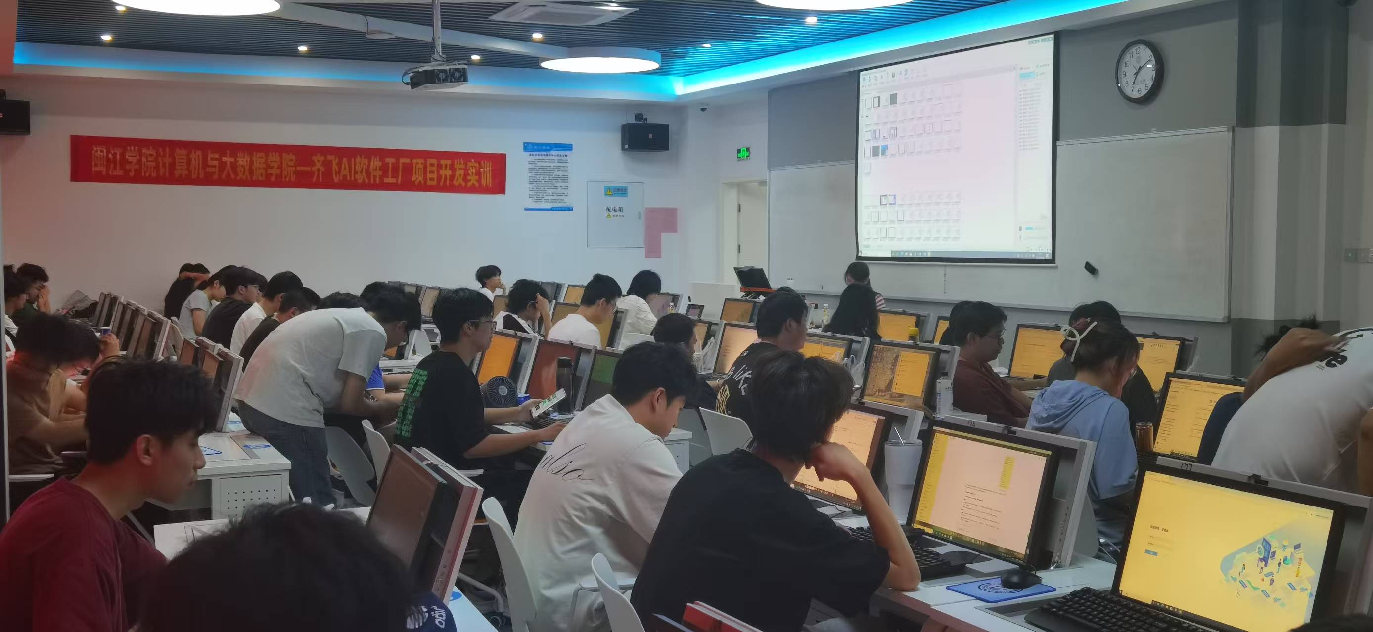本次实训项目是学院深化产教融合、培养应用型人才的重要举措。合作依托齐飞未来科技的AI软件工程实训平台,为学生们构建了覆盖软件开发全生命周期的教学场景。实训期间,企业工程师为学生讲授了行业前沿技术与就业前景,并指导学生以团队形式,利用AI辅助工具完成了从需求分析、原型设计到代码生成与测试部署的完整项目流程。