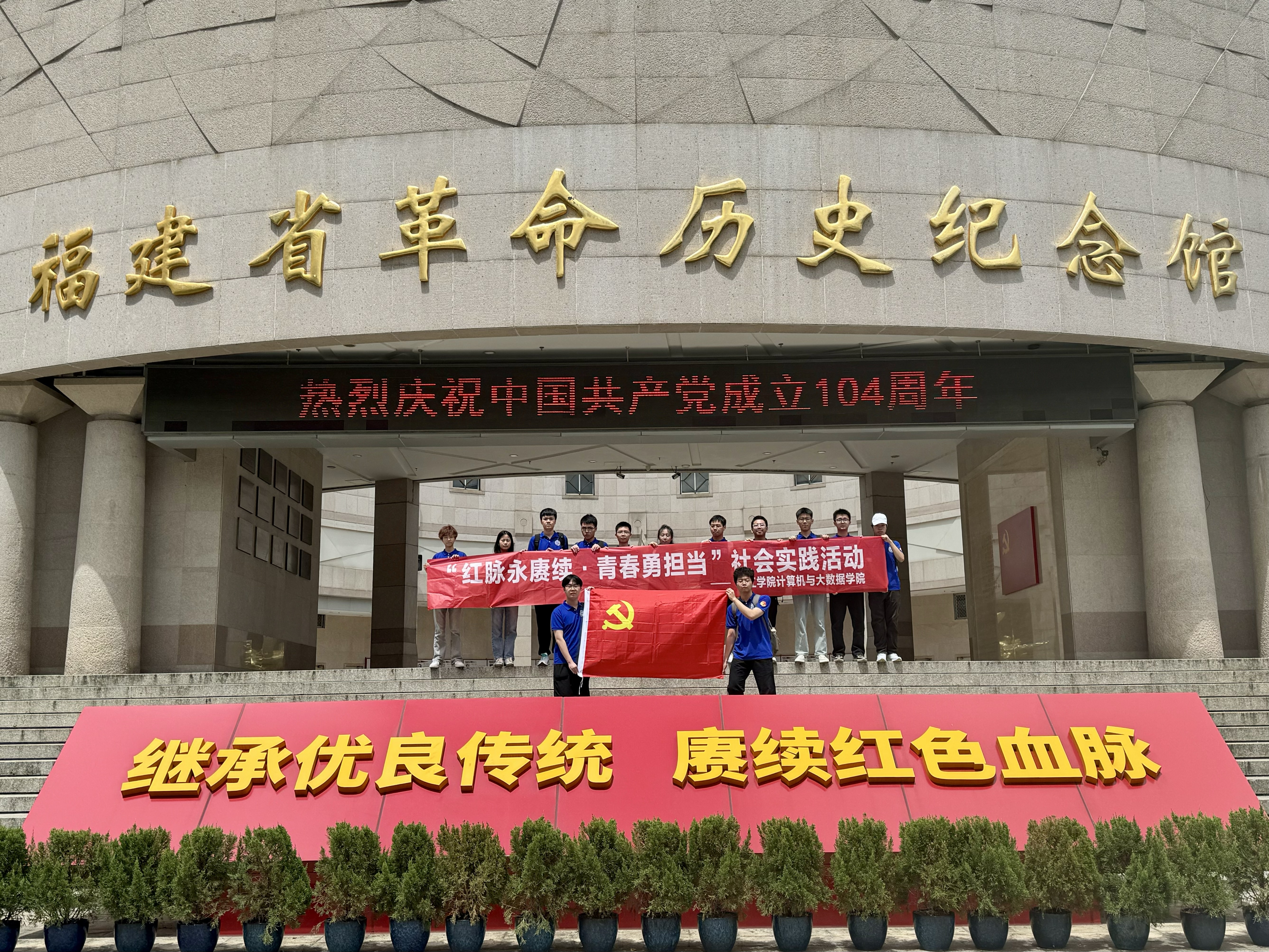 为庆祝中国共产党成立104周年,深入推进青年学生理想信念教育,传承红色基因,厚植家国情怀,7月2日,中文字幕 开展“红脉永赓续·青年勇担当”暑期社会实践活动,活动由卢卫桢老师带队。实践队先后走进中共福州中心市委旧址、福建省革命历史纪念馆和新四军驻福州办事处旧址,在实地探访中重温革命历史,感悟初心使命。