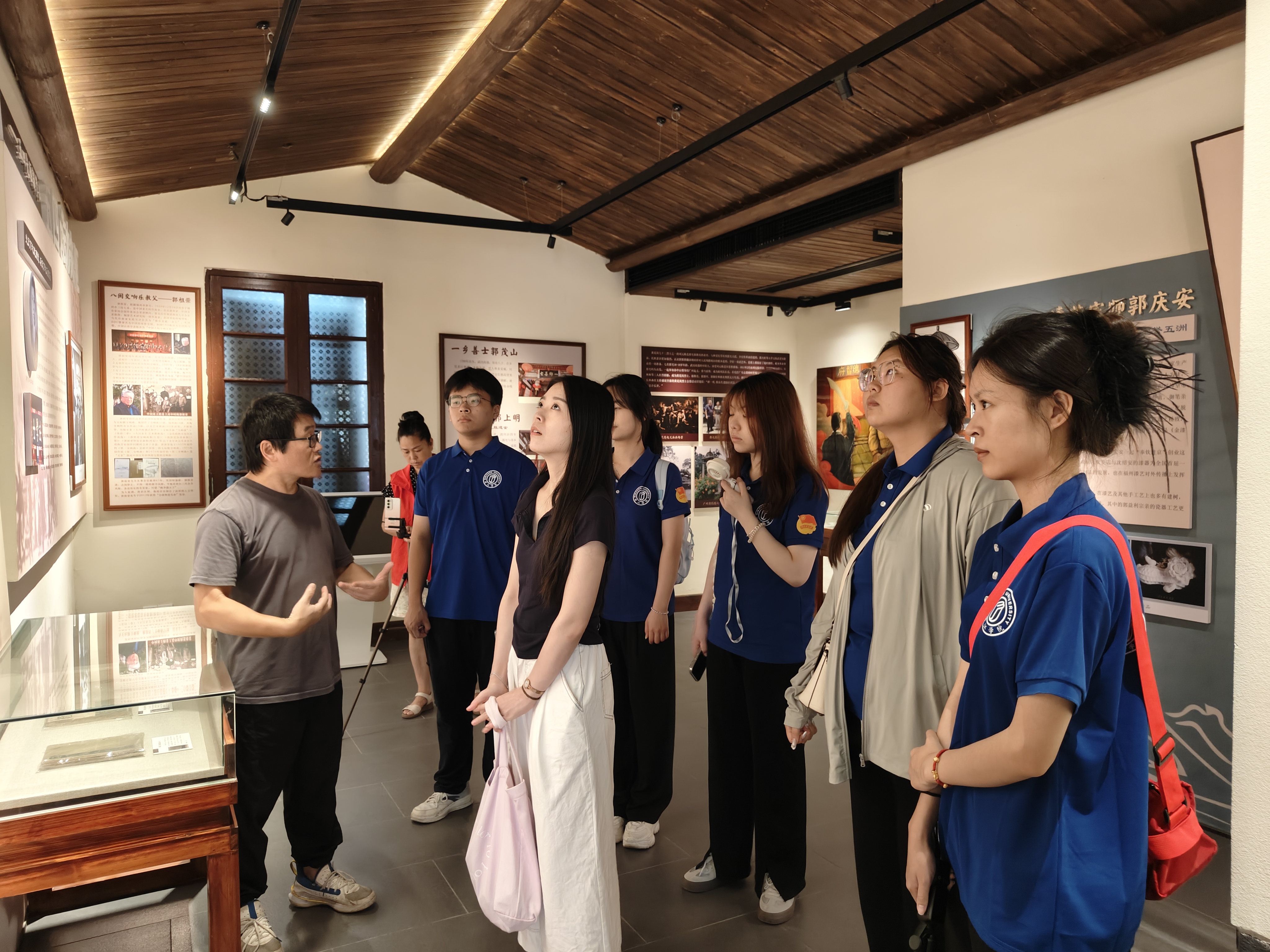 实践队首先来到了郭宅博物馆,该馆于2021年由侨商郭钦荣兴建的“心远庐”改建而成。郭宅竹编非遗传承人郭涛老师热情接待了实践队一行人。博物馆一楼主要介绍了郭姓的起源、郭宅村历朝的建制沿革,展现历代名人志士艰苦创业、奋斗打拼的故事。在这里,实践队员了解到了“五四”先驱郭梦良和福州才女庐隐夫妇的故事,以及明朝嘉靖年间十八勇士抗击倭寇抵御外侵、黄花岗起义郭氏三烈士舍身就义、郭氏集团的创立发展等故事。