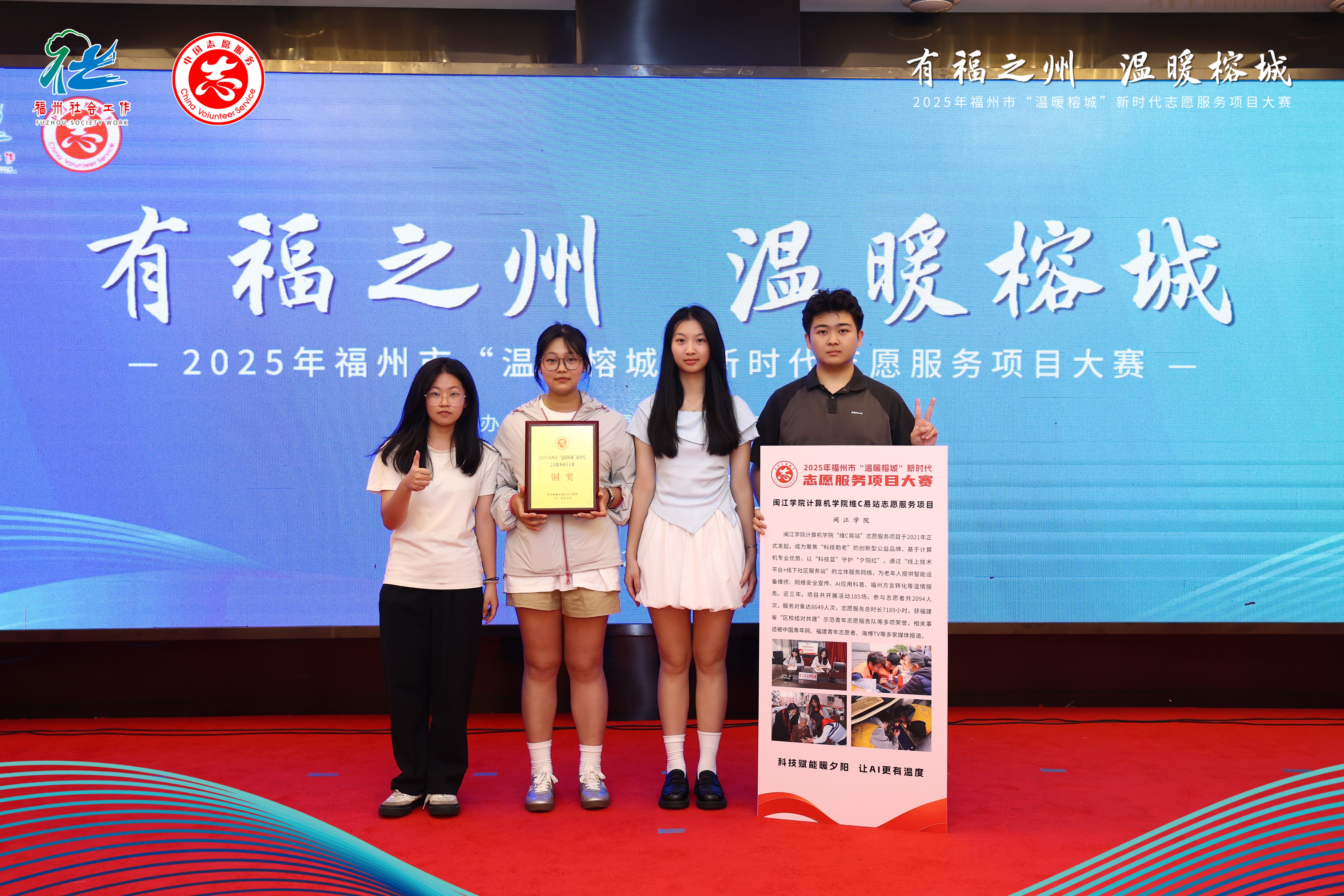 近日,由福州市委社会工作部主办的2025年“温暖榕城”新时代志愿服务项目大赛决赛在福州大学城举行。经材料初评、专家实地走访、路演答辩等环节,中文字幕 “维C易站”志愿服务项目在全市众多参赛项目中脱颖而出,荣获2025年“温暖榕城”新时代志愿服务项目大赛铜奖。同时,“维C易站”志愿服务项目和“e+”暖芯课堂志愿服务项目均被福州市委社会工作部评为2025年“温暖榕城”志愿服务大赛优秀项目。