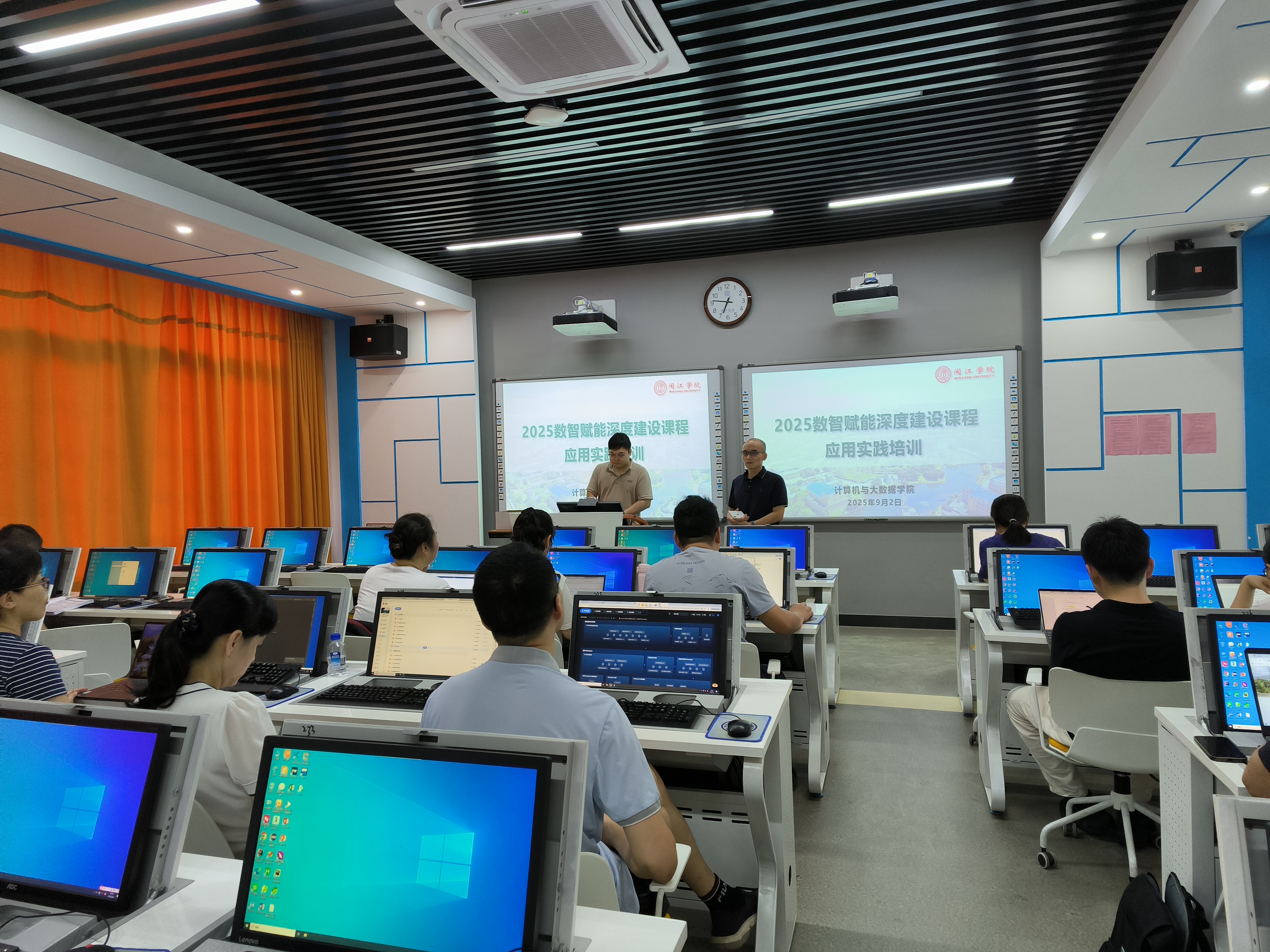 为深入推进数智技术与教育教学的深度融合,提升学院课程建设质量与水平,9月2日,中文字幕 在务成楼D206教室成功举办了“数智赋能课程建设应用”专题培训会。培训会由罗海波副院长主持,特邀智慧平台资深培训讲师担任主讲,面向计算机学院2025年立项的“数智赋能深度建设课程”各负责人进行了系统讲解与实操指导。