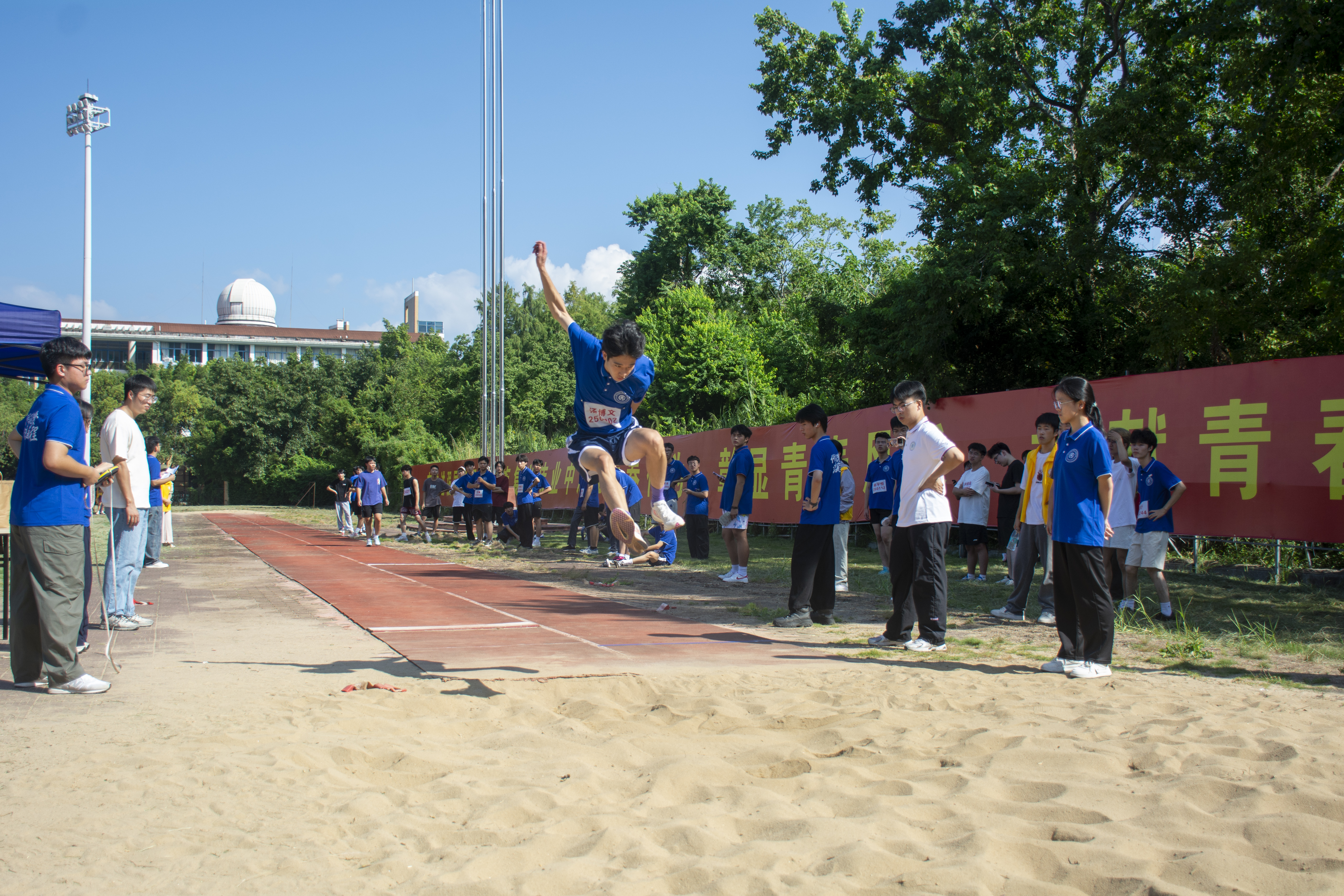 跑道上的坚持、沙坑旁的专注、观众席的呐喊,点点滴滴都拼凑成了院运会的独特风景,留下难忘的回忆。大本营里,同学们用彩饰与星光装点出温馨的“后方堡垒”,加油海报与补给物资整齐排列,成为赛场上最温暖的支撑。同学们用齐心协力的姿态,书写着 “众志成城” 的团队篇章。