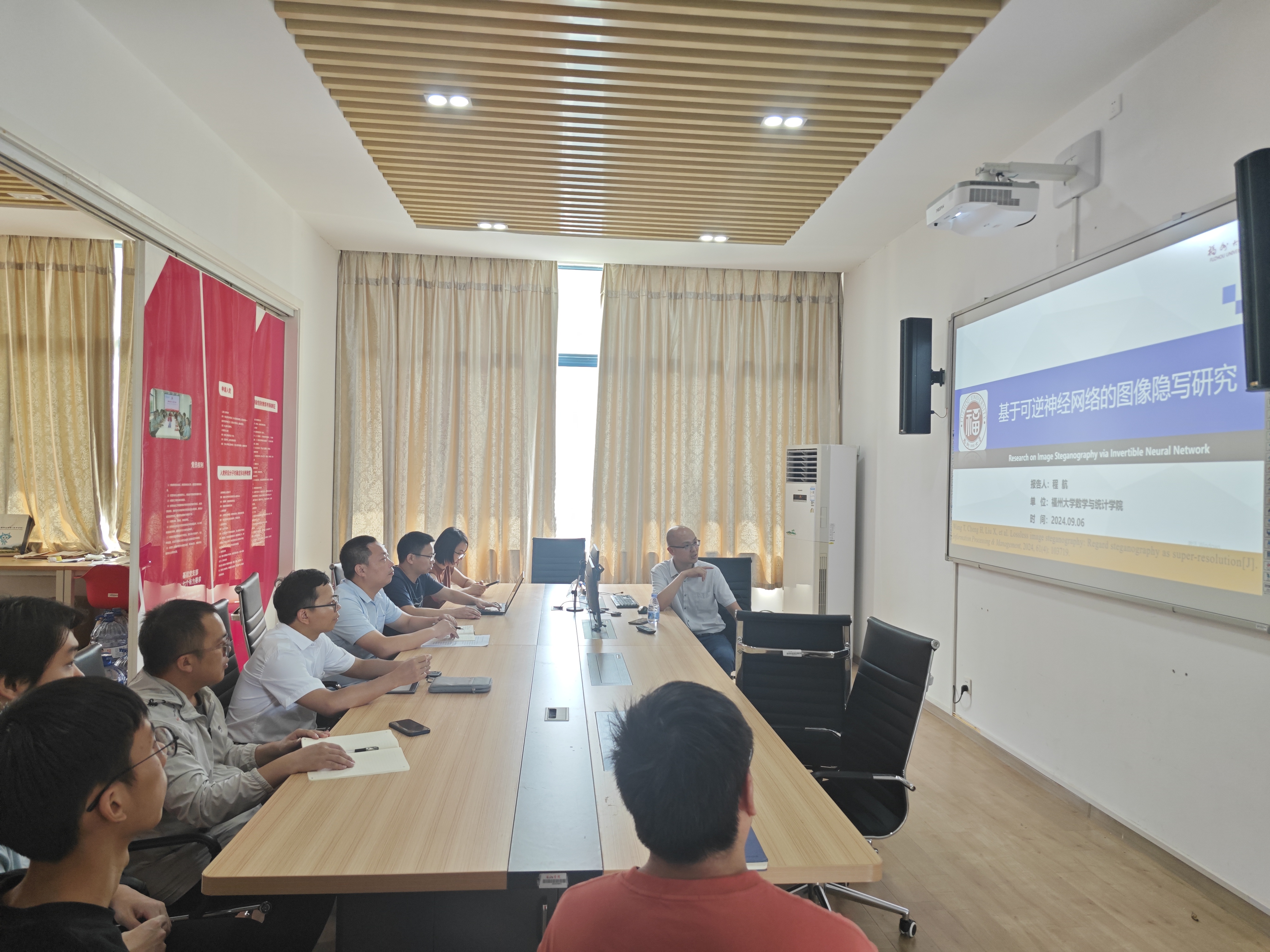 2024年9月6日下午,中文字幕 邀请福州大学程航教授到校作学术交流报告,报告题目为“基于可逆神经网络的图像隐写研究”。程航教授的研究方向包括:多媒体安全、图像处理、加密算法、信息隐藏等。会议由董正山博士主持,部分相关老师及学生参加了此次报告会。
