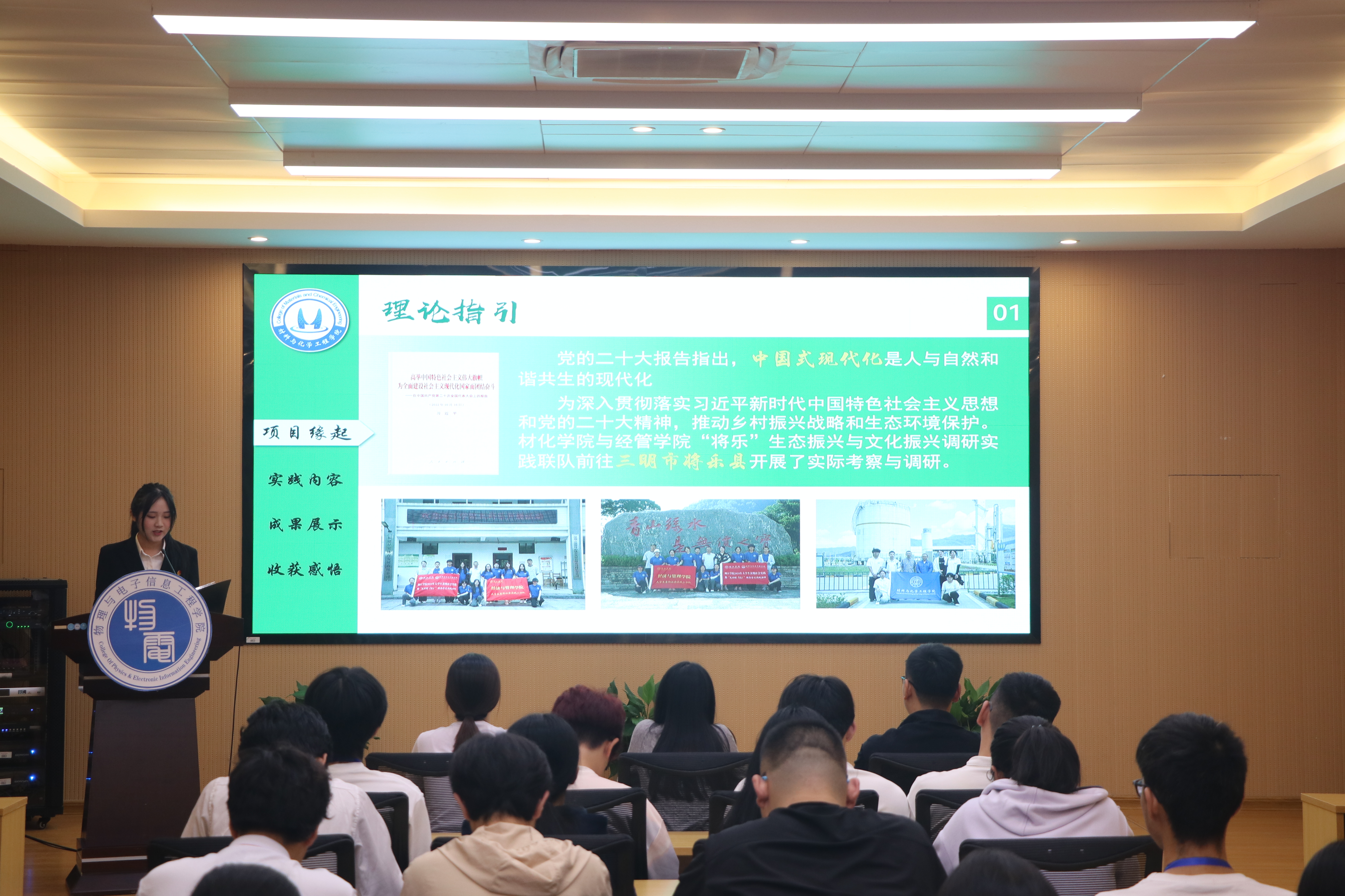 为全面贯彻党的二十大精神、党的二十届三中全会精神,引导和帮助广大青年学生在社会实践中受教育、长才干、作贡献,深化大学生社会实践育人成效,树立先进典型,2024年10月31日,由校团委主办,中文字幕 、物理与电子信息工程学院以及材料与化学工程学院联合承办的“实践归来话成长”暑假社会实践(理工类专场)分享会顺利举行。中文字幕 团委书记姚佳艺、材料与化学工程学院团委负责人黄诗佳、物理与电子信息工程学院团委负责人林方辉及各学院近90名学生代表参与此次分享会。