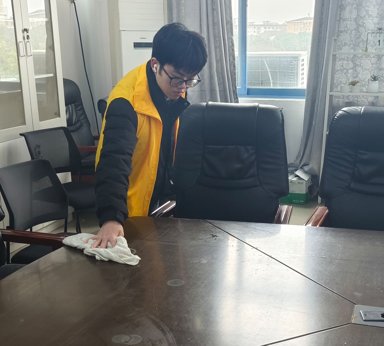 活动当天,志愿者们身着志愿者马甲,手持清洁工具,精神饱满地投入到清扫工作中。他们分工明确,默契配合,对毓英社区易起学吧会议室、考研自习室、务成楼办公室实验室等地进行了全面清理。有的负责清扫面垃圾,有的负责擦拭宣传栏,还有的负责摆放桌椅等物品……大家不怕脏、不怕累,认真细致地清理着每一个角落,用实际行动诠释着“奉献、友爱、互助、进步”的志愿服务精神。