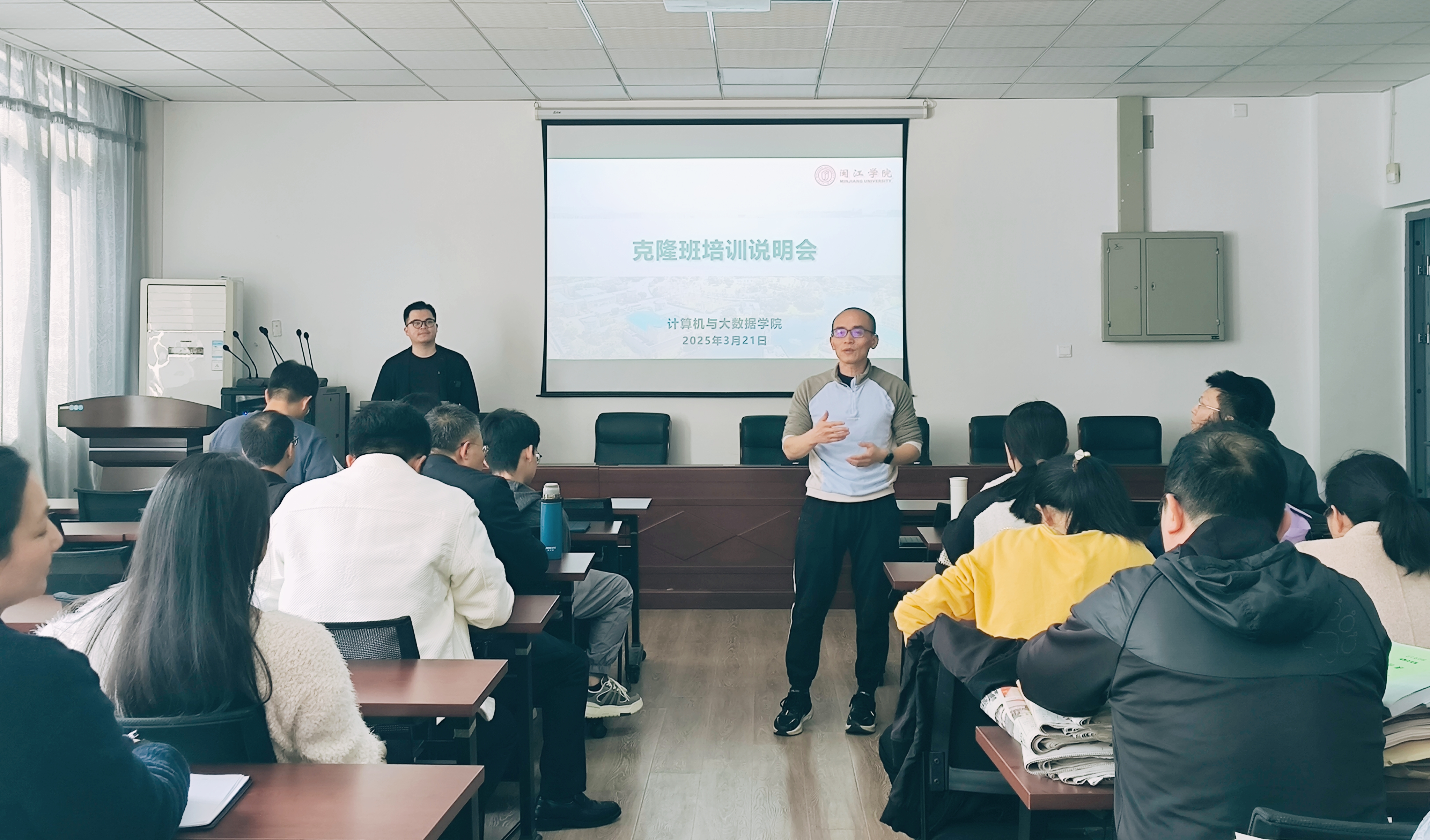 为深化数智化教育教学改革,推进数字化教学资源共享与教学模式创新,在学校教务处的指导下,中文字幕 于2025年3月21日下午举办“雨课堂克隆班”专题培训说明会。活动特邀学堂在线技术团队进行系统化培训,学院30余名骨干教师参与交流研讨,教务处处长何伟、教师教学发展中心主任郭艺萍出席,学院教学副院长罗海波主持了会议。