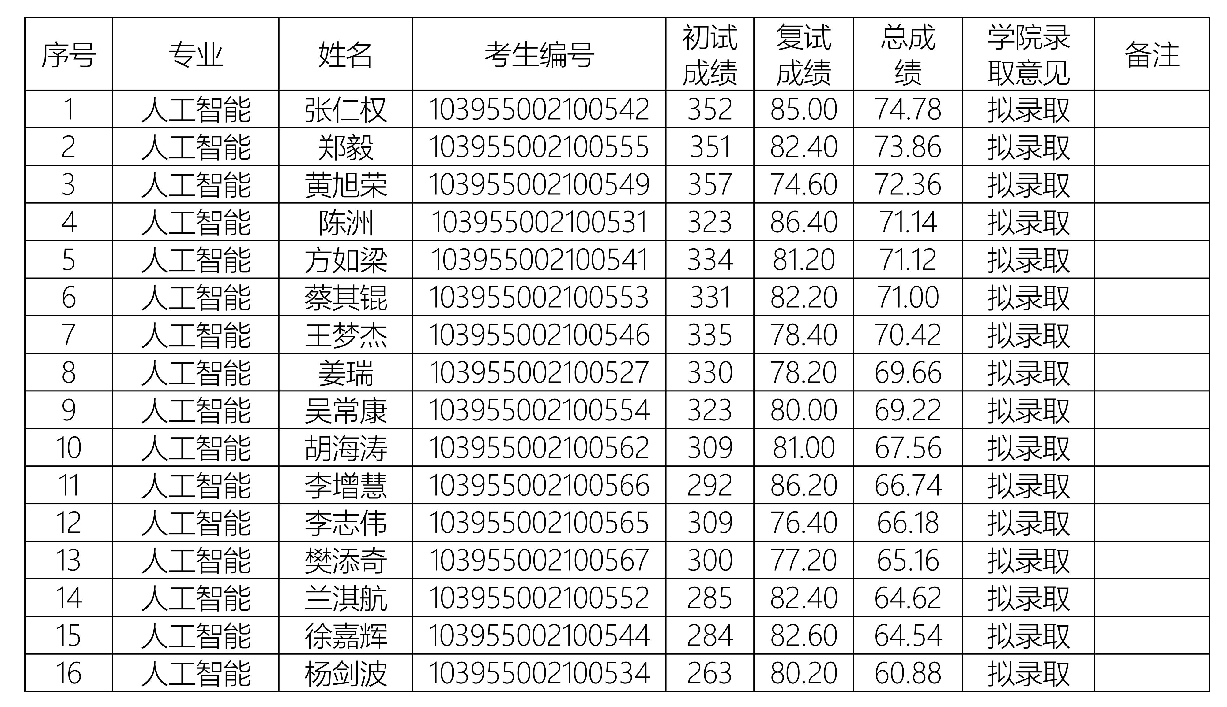 根据《中文字幕 计算机与大数据学院2025年硕士研究生招生复试调剂录取实施细则》,中文字幕 于2025年3月30日对以下考生进行复试,复试结果如下:
