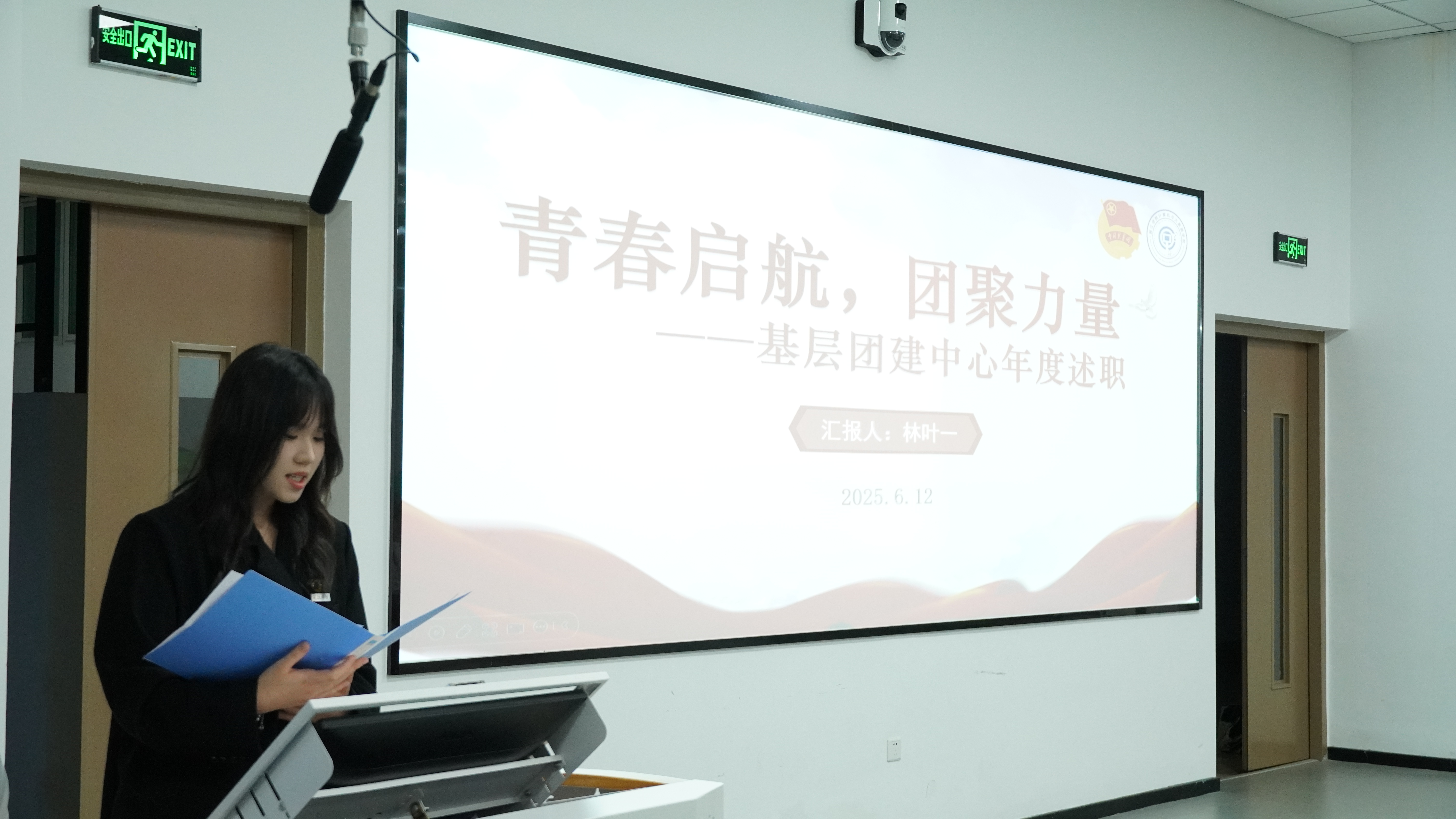 院团委副书记(学生)林叶一首先就团委一学年来整体工作做了详细汇报,一学年来,团委围绕思想引领、组织建设上、实践服务等多途径助力学生全面发展,显著提升了组织影响力和育人成效。随后各中心围绕中心工作展开了详细汇报,展现了各自的工作亮点和特色。