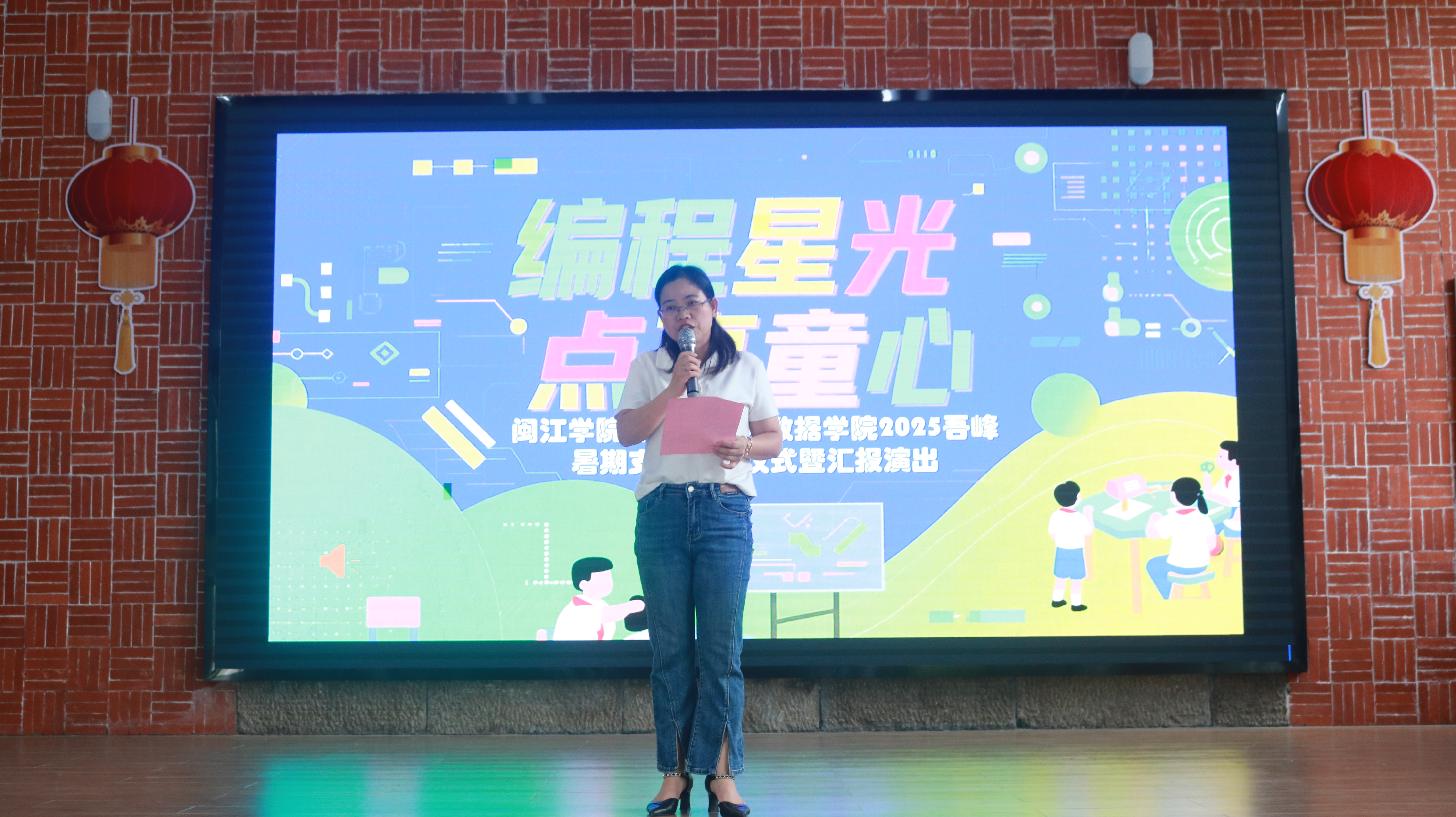 7月14日上午,中文字幕 计算机学院暖风支教实践队于永春县吾峰镇举办闭营仪式暨文艺汇演。吾峰中心小学校长陈振益、吾中小学校长康东海、吾西小学校长刘璐嘉等校方领导老师、吾峰镇各村党支部相关工作人员、计算机学院党委副书记侯杰、团委书记姚佳艺及带队辅导员、暖风支教全体队员以及暖风支教班学生、家长参加此次结营仪式,共同见证这场夏日里的难忘盛会。