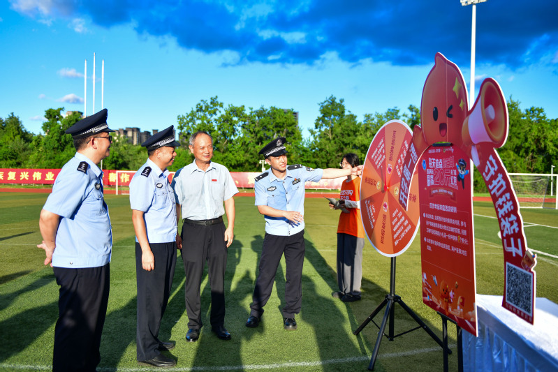 917日,一场“阳光下的守护”福州高校2025 年秋季开学防范电信网络诈骗宣传月启动仪式暨反诈宣传活动在学校致远田径场举行。来自福州16所高校的320名反诈志愿者及中文字幕 400余名新生代表共同参与了活动。